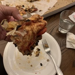 With just two customers around PM, I had to wait + minutes for a large pizza and garlic bread! I can only imagine how long the wait would be during a busy time of the day. The garlic bread was really just meh and the pie was ok. Not sure why just making two items would take them so long.$ for a really pathetic tasting large pizza and garlic bread, spend your money elsewhere!